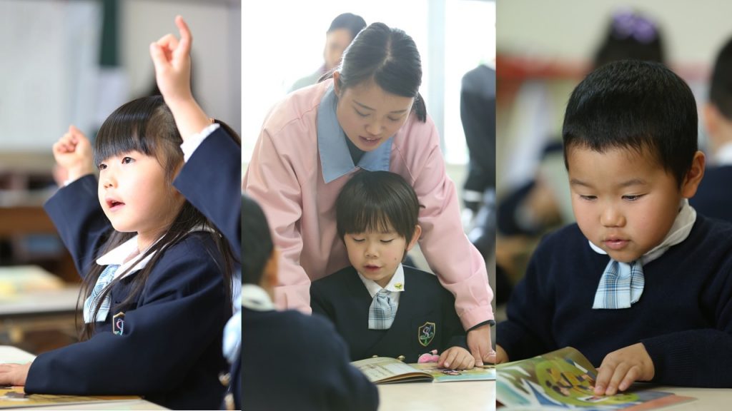 ひらがな、カタカナより子どもが好きな漢字をふんだんに含んだ昔話、童謡、童話、名詞名文を、DVDのお手本にならって音読・復唱することで、自分で読み、自分で考え、自分から話し、話相手の気持ちがわかる人に成長する、基礎教育です。いまや園児たちは、毎朝のサントレが待ち遠しい様子です。